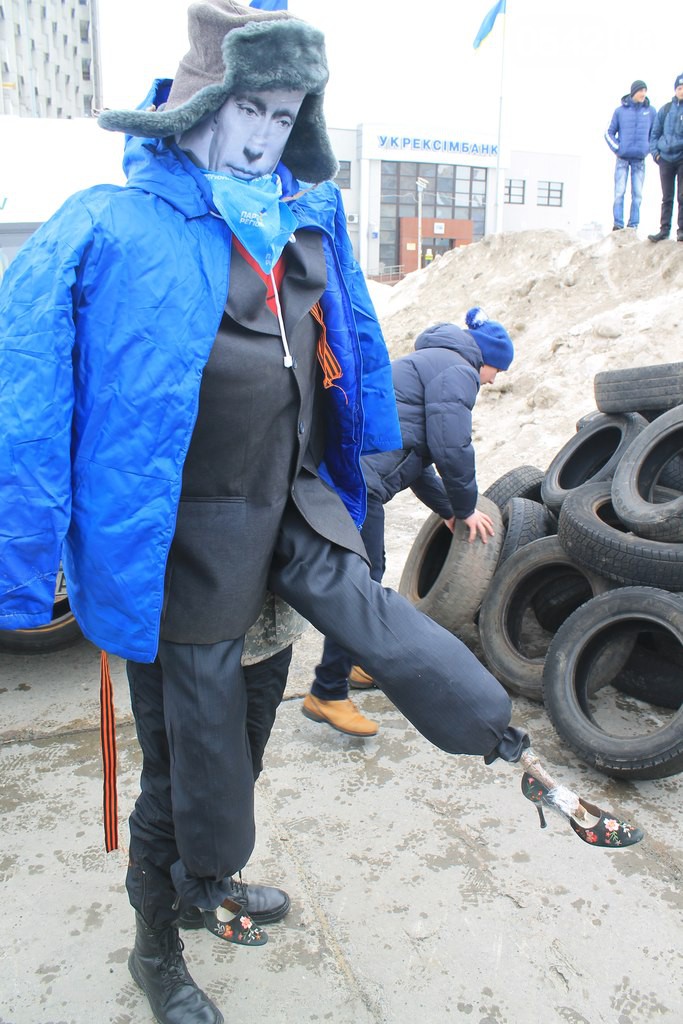 По словам организатора акции – Александра Бойко, сегодняшняя акция посвящена двум поводам: по примеру наших предков, которые сжигали чучело Зимы, чтобы избавиться от нее, они решили сжечь чучело Путина. Второй повод, это, по сути, начало оккупации россиянами Крымского полуострова. Ведь если судить по медалям, которые Кремль вручал военным за взятие Крыма – операция началась 22 февраля.