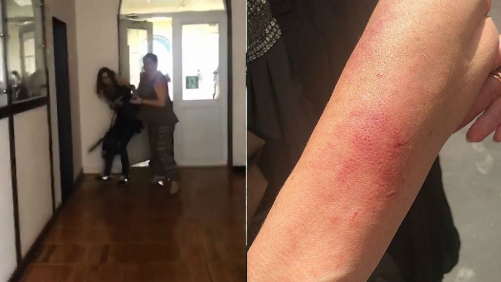 Когда первокурсница достала телефон, чтобы снять инцидент на камеру, преподавательница поручила помощнику забрать у студентки гаджет.