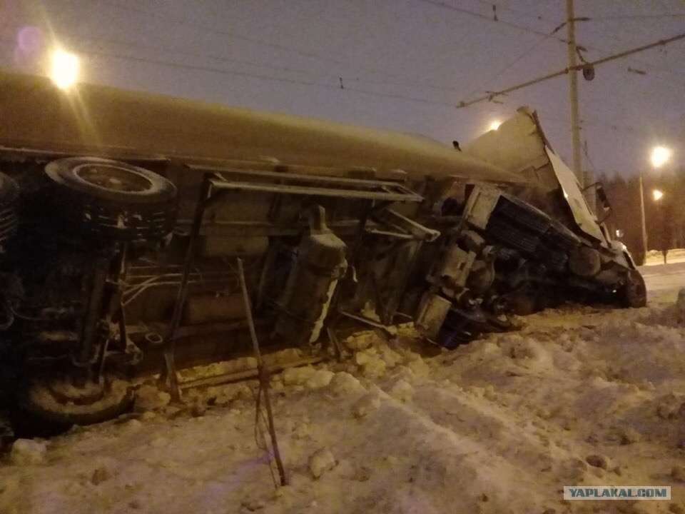 Авария произошла на проспекте Победы, когда машина въезжала в город. При повороте с Оренбургского тракта фура вылетела с дороги и чуть не опрокинулась на трамвайных путях, уткнувшись в столб.