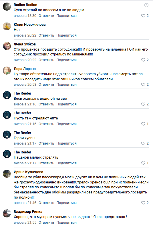 А как вот эти комментаторы написали бы, если бы их родственников/детей сбил бы насмерть такой вот водила? Пиздец