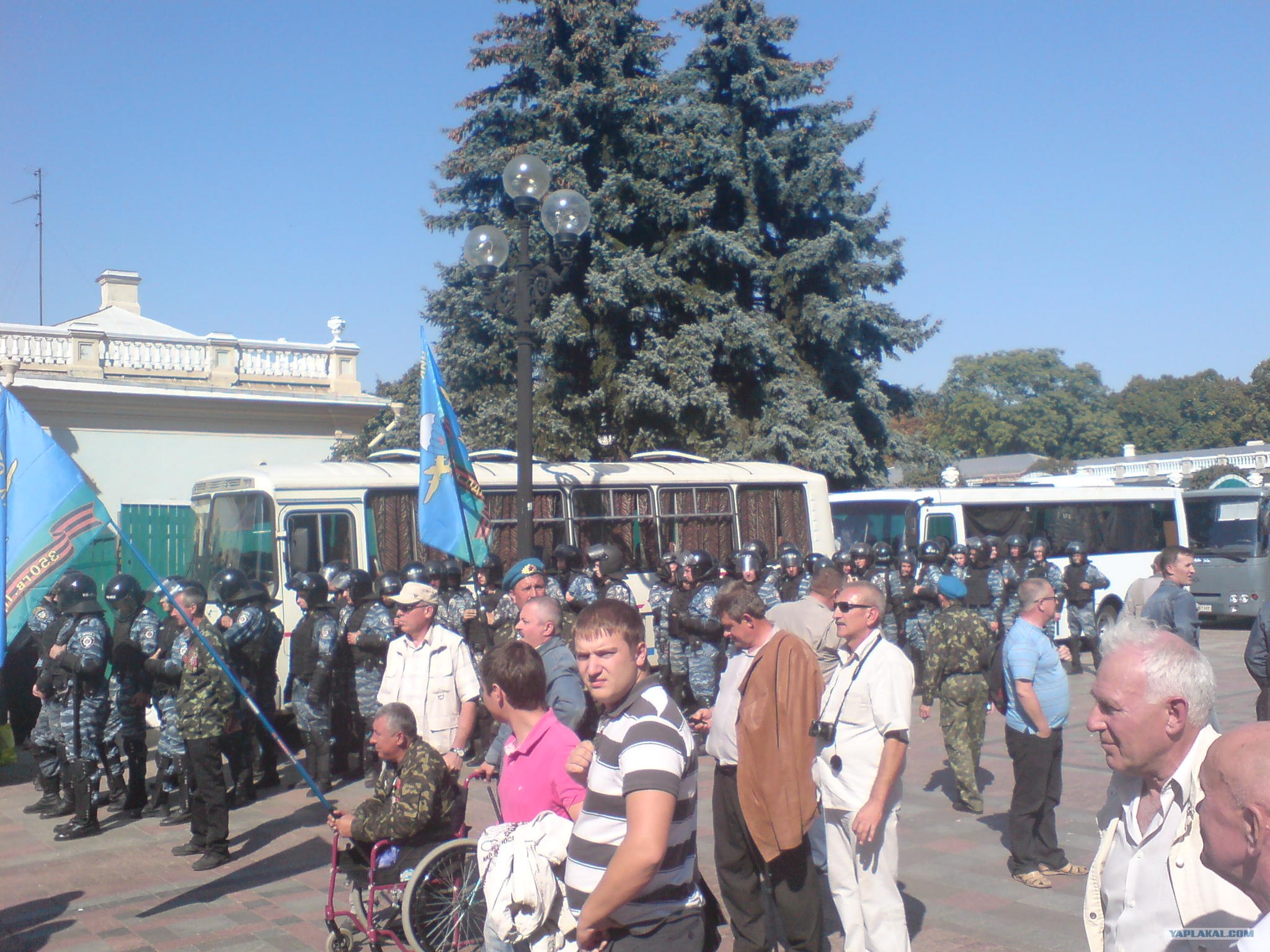 Воины-афганцы и "чернобльцы" с самого утра протестовали под парламентом, снесли ограждение возле верховной рады и устроили штурм здания.
