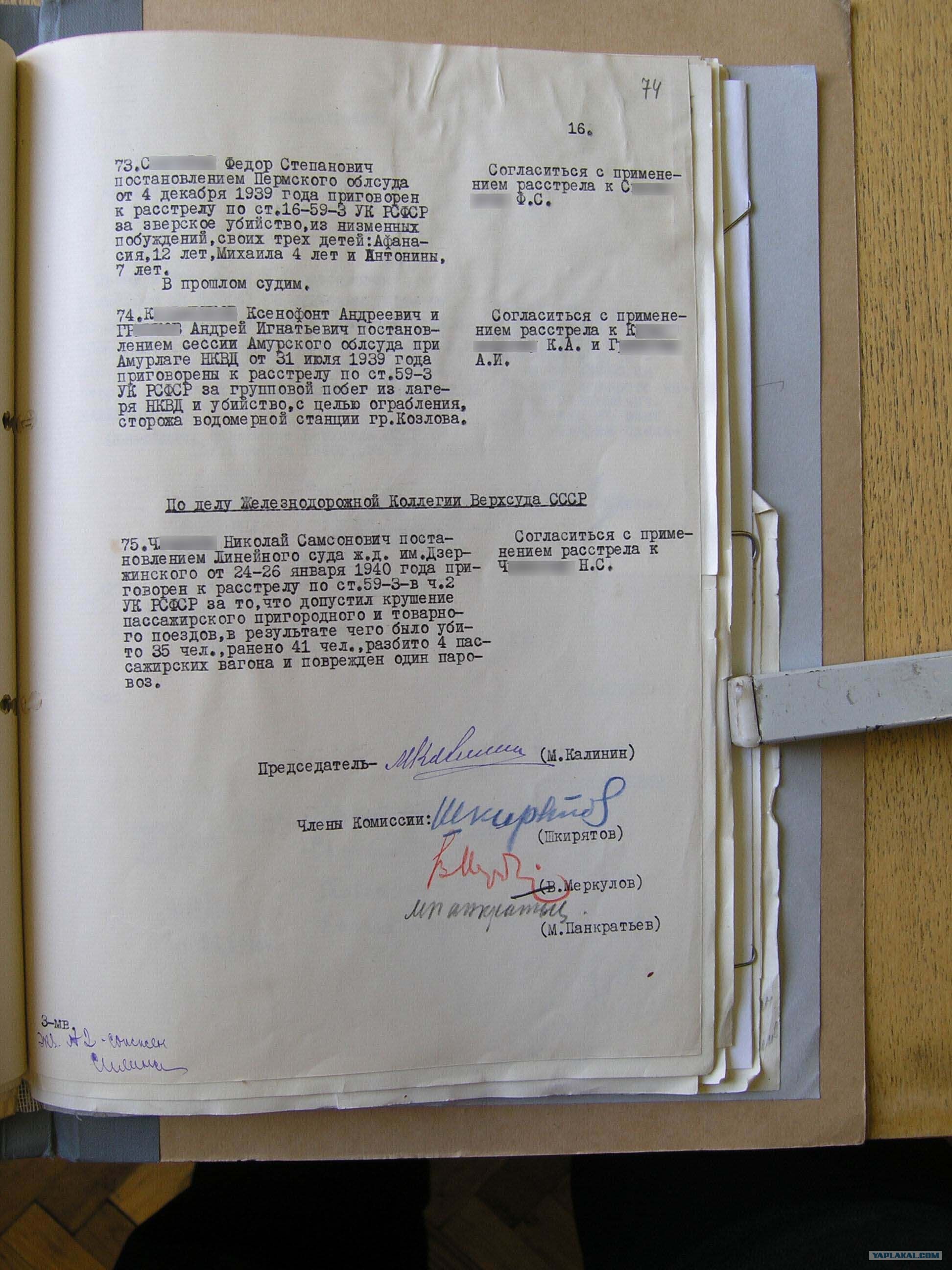 Но главное, на мой взгляд, не это. Ведь из этого документа становится понятно, что в СССР ни один человек, даже самый простой и не именитый, не был убит государственными служащими без разрешения самого высшего, реального органа власти – Политбюро. Причем, исходя из того, что несколько человек было помиловано, следует, что Комиссия Политбюро реально рассматривала дело каждого осужденного к расстрелу. А ведь закон не обязывал Политбюро заниматься вопросами помилования – это было делом Президиума Верховного Совета, - тем не менее, члены Политбюро тратили время и силы на то, чтобы параллельно с Президиумом ВС рассмотреть дела осужденных к высшей мере социальной защиты. И делали это вместо того, чтобы понырять за амфорами или слетать на охоту.