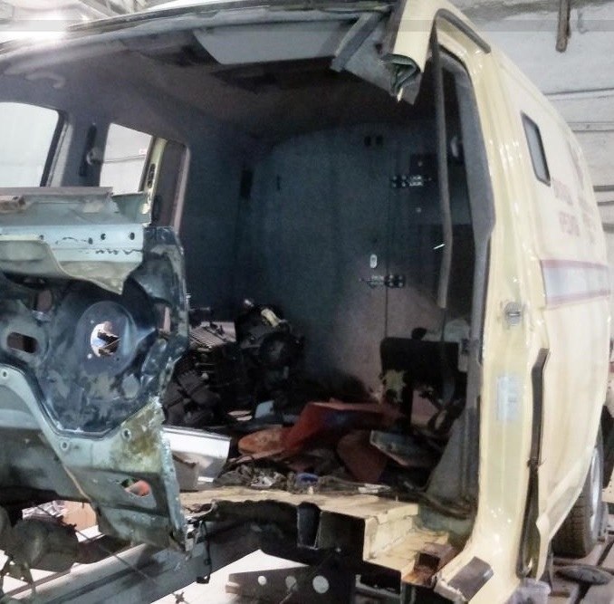 В странах "нормального человека" гражданский бусик никогда не будут переделывать в "спецтехнику", которая приходит в негодность от простого ДТП и не защищает водителя и экспедиторов от стрелкового оружия (эта стойка, которую приварили новую из калаша не просто на вылет, там прицельно через неё можно). dont.gif