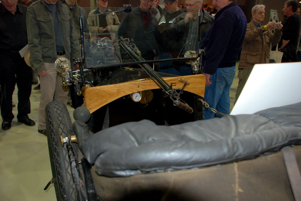 Рычажное управление, рукоять акселератора, опережение зажигания и коробка передач. В моторе нет давления масла, в масляный резервуар нагнетается воздух, который гонит масло в двигатель. Таким же образом бензин подается из бака в карбюратор, топливного насоса как такового нет.