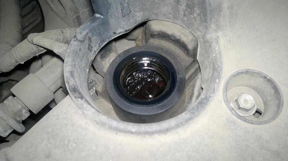 В общем, выбирал машину, наткнулся на интересное объявление. Владелец девушка, небольшой пробег, не битая, все ТО у официалов (есть отметки) итп... цена выше рыночной на 15%. Приехал смотреть. Машина действительно хорошая... с виду! у меня есть толщинометр - померил, выявил, что капот крашен (это и без прибора видно, там на болтах краска содрана). Ну, казалось бы пустяк, но нет! Какой-то неведомый порыв заставил меня заглянуть под масленую крышку и... это перечеркнуло все представление о машине! На фото видны сгустки масла, такого я не видел даже на своей старой 30-летней волге (ГАЗ-24), а это дорогая хорошая иномарка! Судя по всему, масло в ней не менялось никогда!