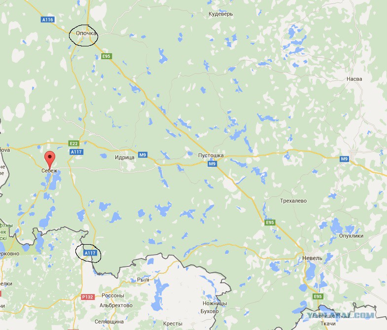 Вот на карте 2 дороги, ведущие к Питеру, одна через Езерище и вторая через платную дорогу на Опочку, выделил её начало и конец аляповатыми кружочками.
