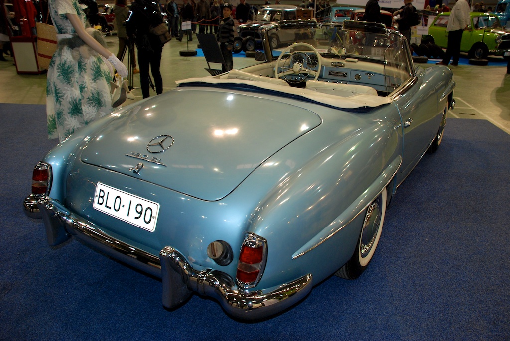 190SL стал востребованным на рынке младшим братом модели 300SL. Шасси было основано на обычном шасси 190 модели, и за счет этого просто поддавалась ремонту и реставрации. В 1955.1963 гг. выпущено 25881 штук. Выставленный образец - приехавший из америки Родстер без твердой крыши