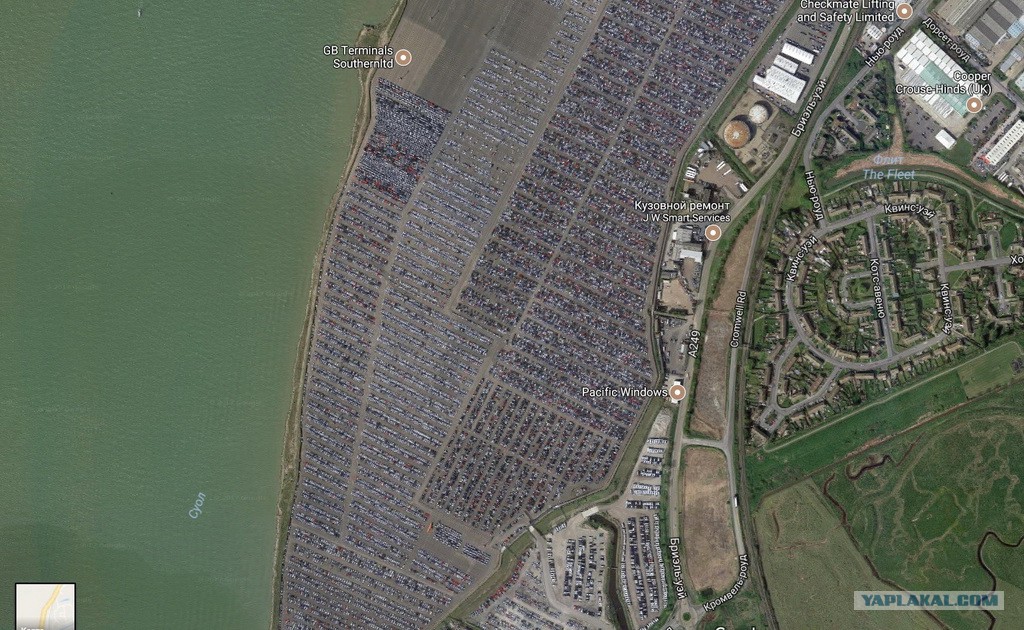 Только что посмотрел на Google maps Ширнесс, Великобритания, там стоит несколько десятков тысяч авто, так что в статье думаю все верно.