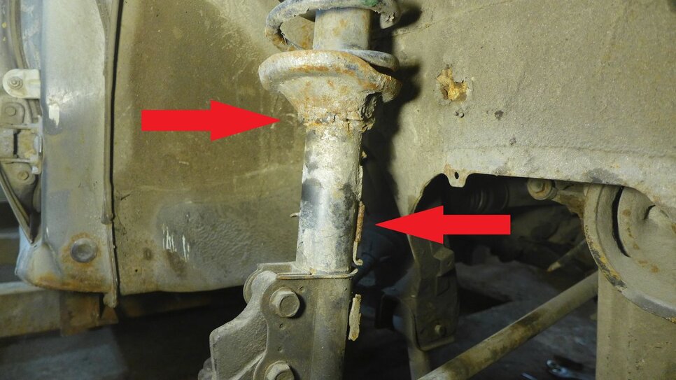 Передние стойки в прошлом пережили сварочные работы в основаниях опорных чашек пружин, но оторванные или отгнившие кронштейны крепления тормозных шлангов так и не появились.