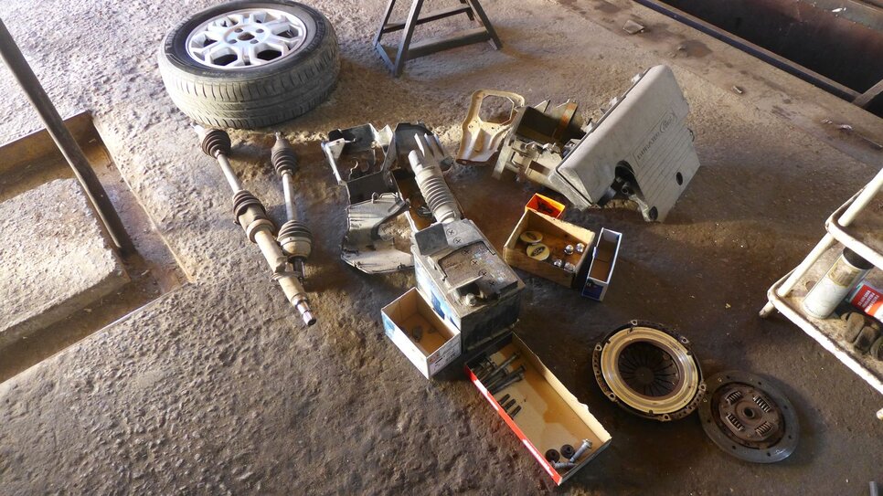К машине прилагалось много разнообразного железа и банок с болтами.