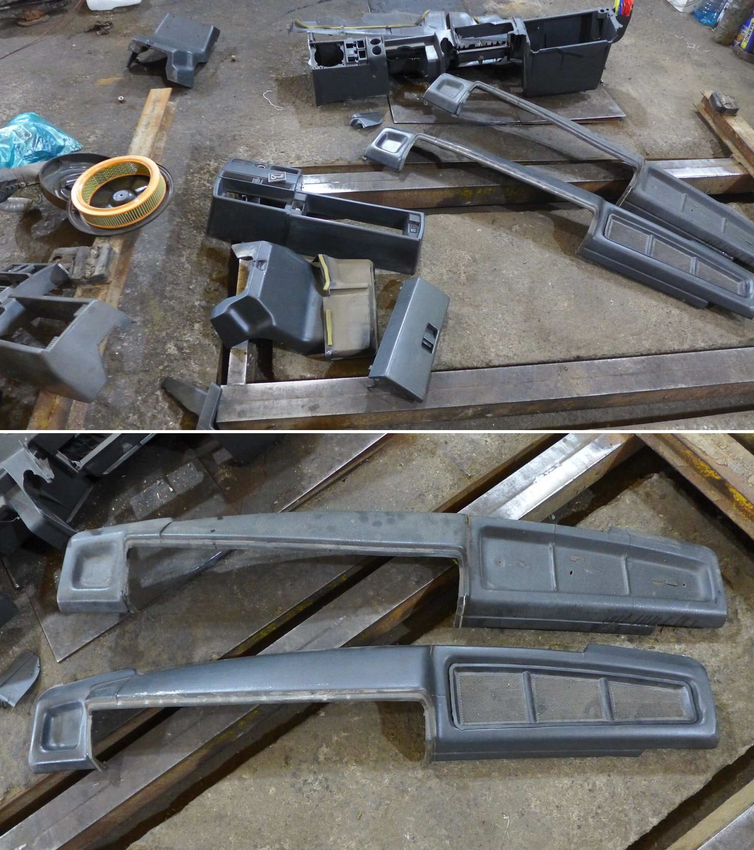 В итоге пришлось разложить в мастерской все детали передней части салона двух машин, чтобы выбрать те, которые можно хоть как-то использовать.