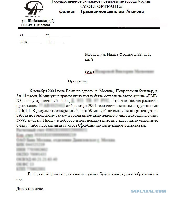 Легко отделался? Судите сами. Обычно к таким господам после приходят вот такие бумаги. Большинство платят добровольно. Сумма зависит от времени простоя, и количества собранных в очередь трамваев.