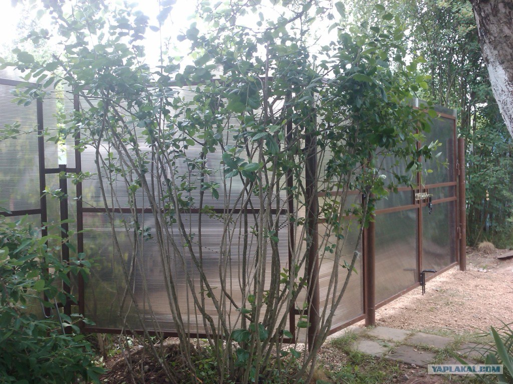 33. А вот еще забор из поликарбоната. Про него тоже можно пост сделать, если фото найду.
