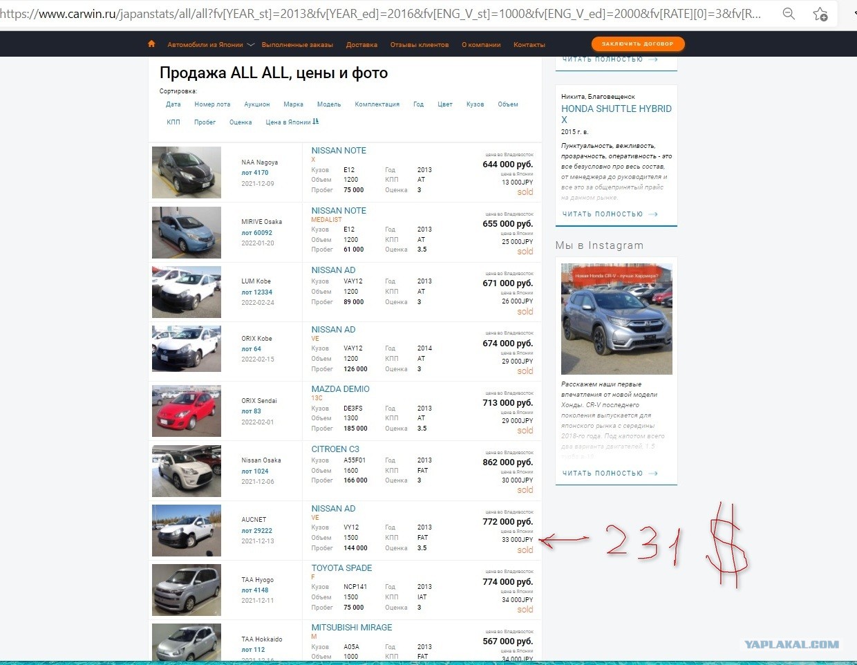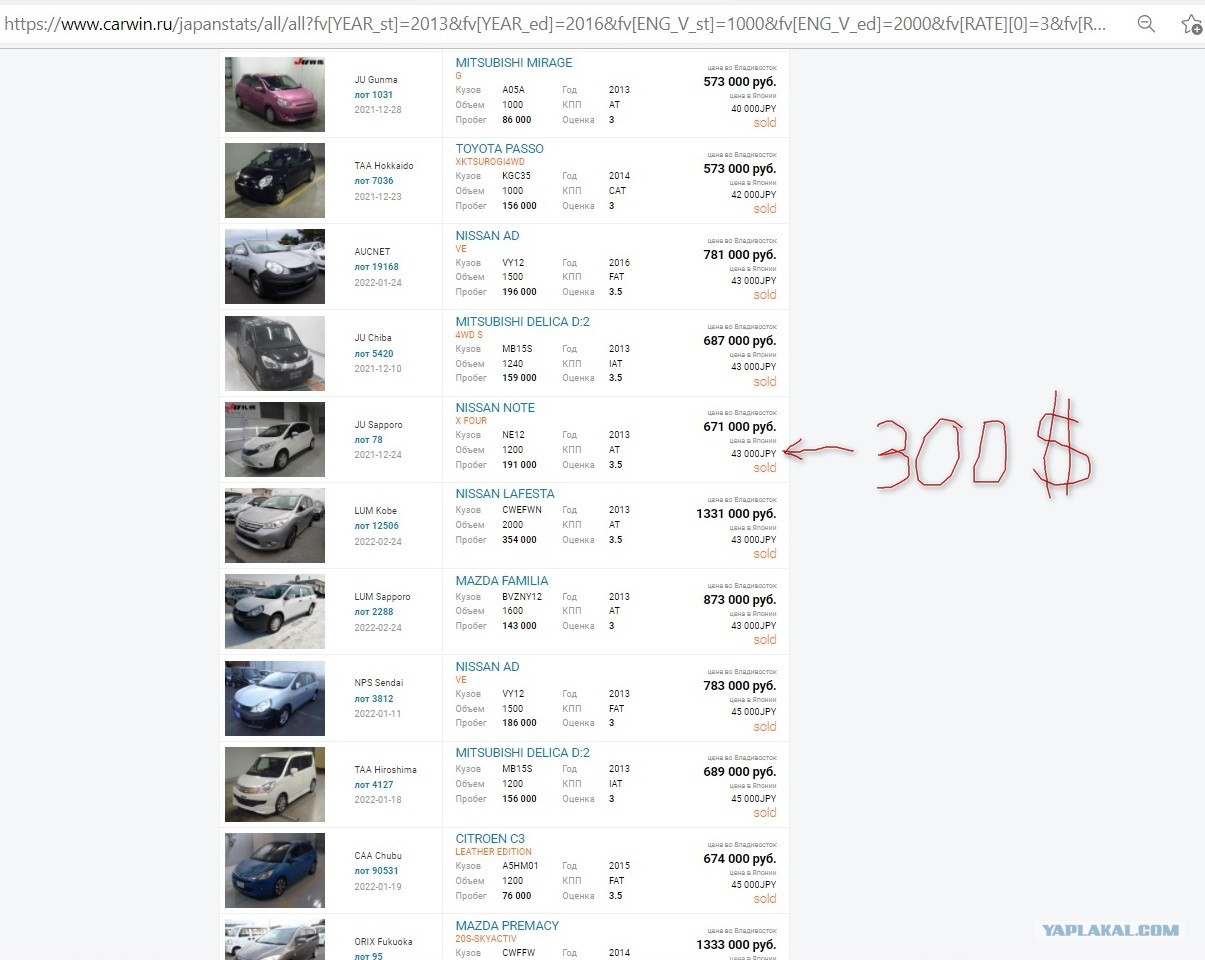 Вот пример тачки за 231 доллар США на аукционе Японии. Но это если наши барыги из правительства отменят пошлины. В военное время это необходимо считаю... Я думаю тут много желающих бы за 40 тыр купить 9 летнего Ниссана полторашку. И похуй на руль.