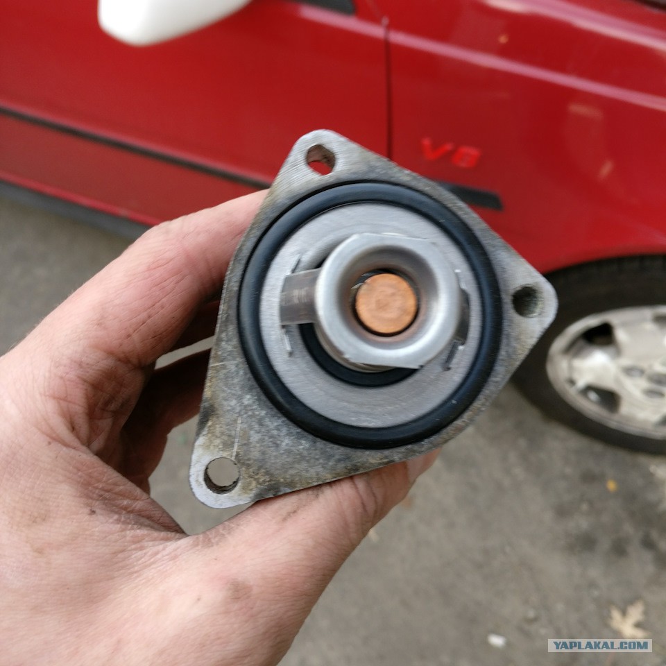 Делать нечего — выкатили Валю. Поскольку делать уже нечего — решил я поменять термостат. Как это делать — понятия не имею. Но имею золотые руки из жопы и огромное желание.