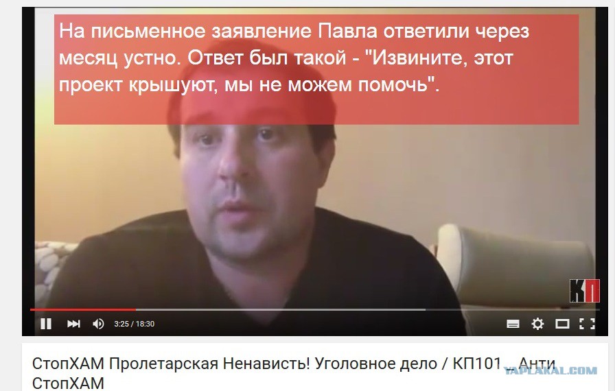Решил посмотреть этот ролик до конца, что бы понять из за чего ты так упираешься. Думал может всё таки и в самом деле тайну какую про стопхам герой ролика Павел Паранов (первая буква фамилии по моему перепутана) мне раскроет. Но после вот этого кадра смотреть дальше не смог. Злые ахенты кремля отрубили мне свет и интернет, что бы не узнал я правду. Пишу при свете свечки, с телефона случайного прохожего.