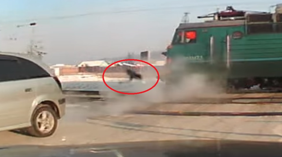 Вот поэтому нехуй на дорогах с правосторонним движением ездить на праворульке! Водила явно не видел поезда!)))
