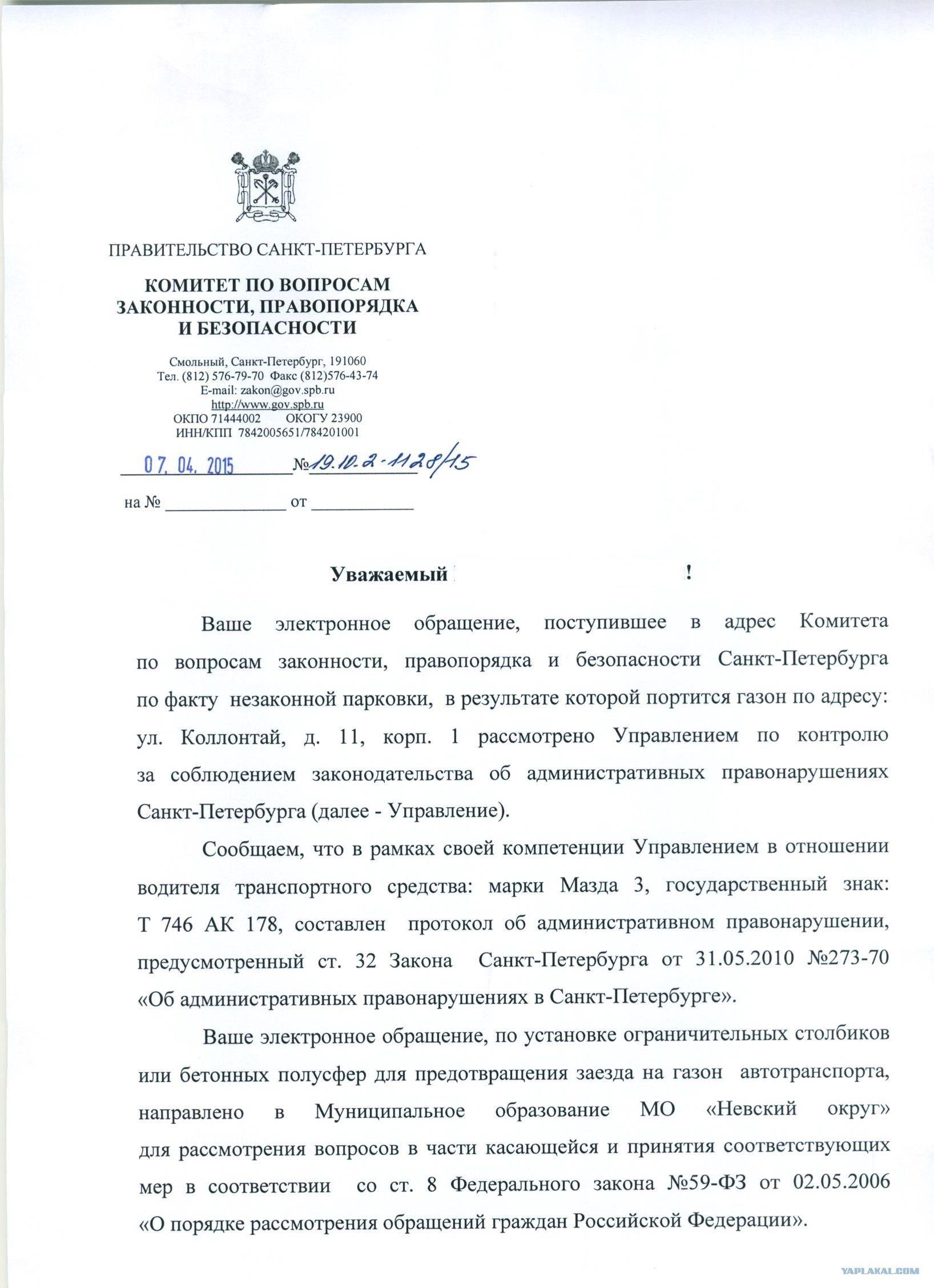 Прикладываю ответ, который пришел мне на почту по поводу тачки на газоне..