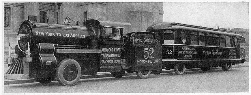 Ну, там внутри-то довольно обычный автомобиль марки Graham-Paige, ныне забытой, а когда-то весьма известной и престижной. А в целом это рекламный поезд, построенный фирмой Harry O. McGee Manufacturing Company для киностудии Paramount / MGM в количестве аж пятнадцати штук в 1929-30 годах.