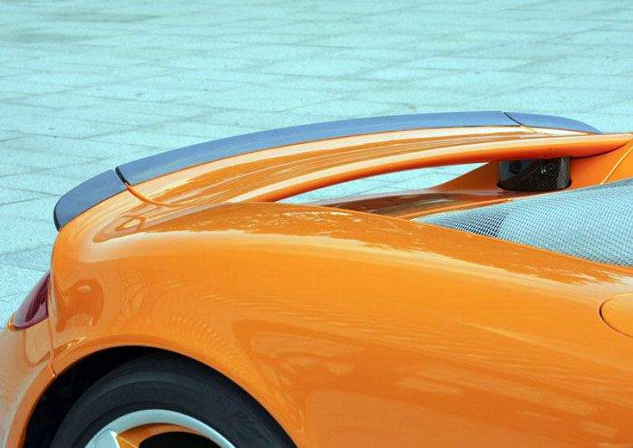 Мастера из TechArt дополнили стандартный обвес автомобиля специально спроектированными компонентами, изготовленные из углепластика, хорошо контрастирующего с кузовом цвета оранжевый металлик.