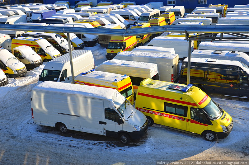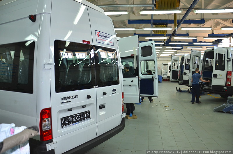 На подъезде к заводу замечаем очередь из автовозов – это поступает очередная партия так называемых полуфабрикатов. Голые, промтоварные фургоны. Давайте пройдём по заводу и посмотрим, что будет на выходе.