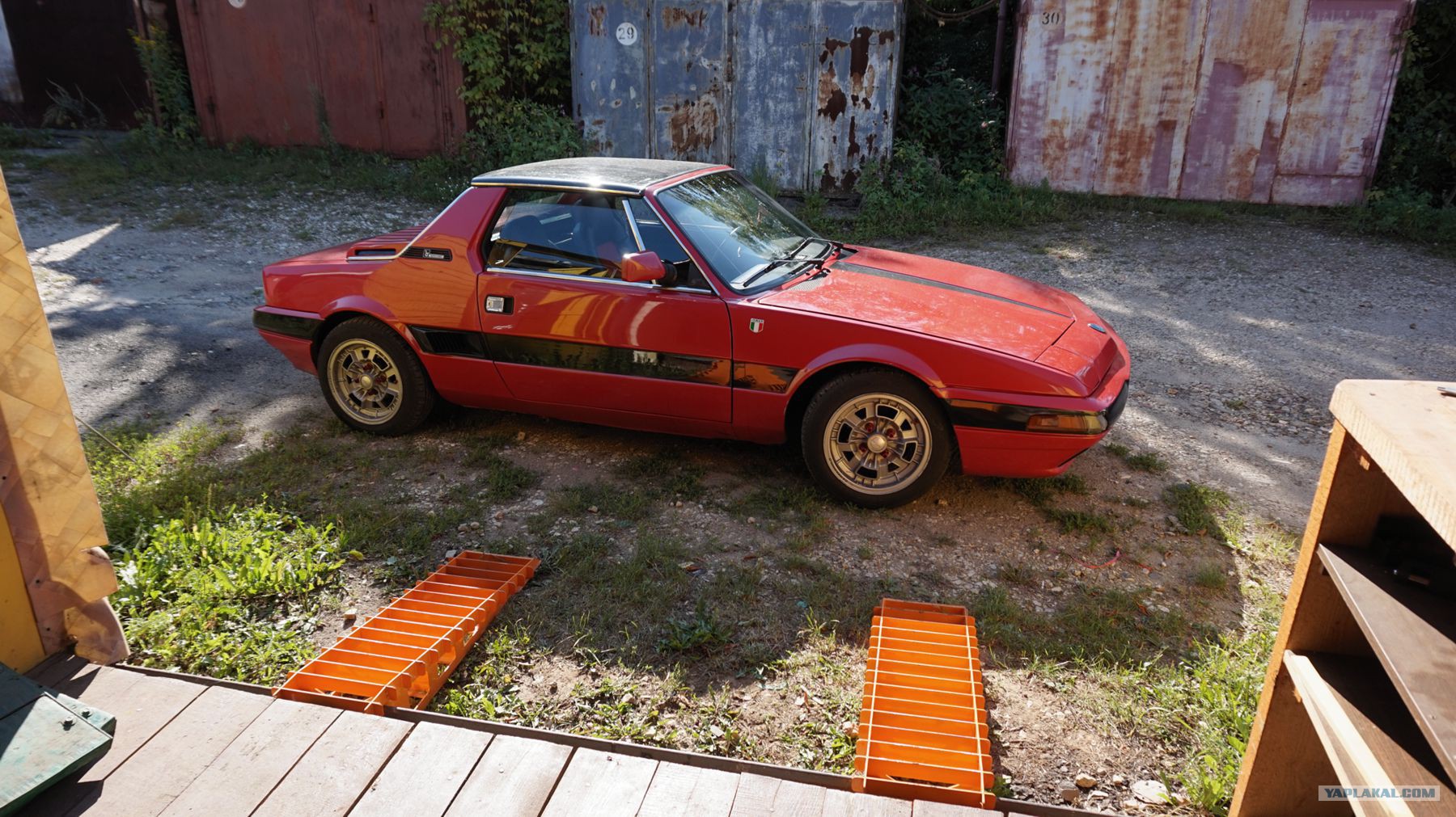 Прикупил себе недавно новый гараж для зимовки моего ретро автомобиля, и случилась проблема с заездными досками. Совсем недавно хозяин гаража провёл ему кап ремонт, приподнял над землёй и сделал новые полы. Из за этого для заезда в гараж пришлось изготовить подставные доски. Приподнять заезд насыпью с наружи не получилось из-за конструкции дверей. Но закатные доски были расчитаны для ваз-2110, и мой ретроспорт со своим клиренсом никак не мог по ним заскочить в гараж, поэтому и пришлось занятсья изготовлением заездных эстакад. Почему эстакад, да потому что я их запланировал двойного назначения!