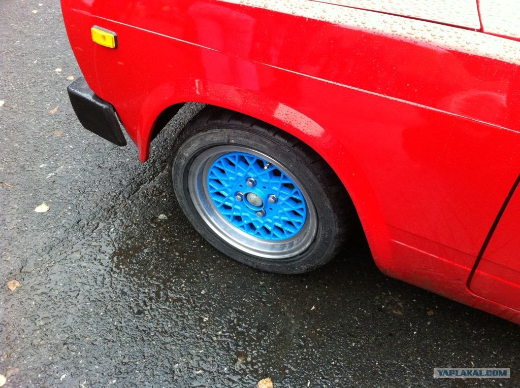 синие диски на красном авто faceoff.gif лучше бы родные оставил! можно было бы ещё их (родные) серебрянкой покрасить, и то было бы лучше... а на месте руля что за уебанство???? mike.gif