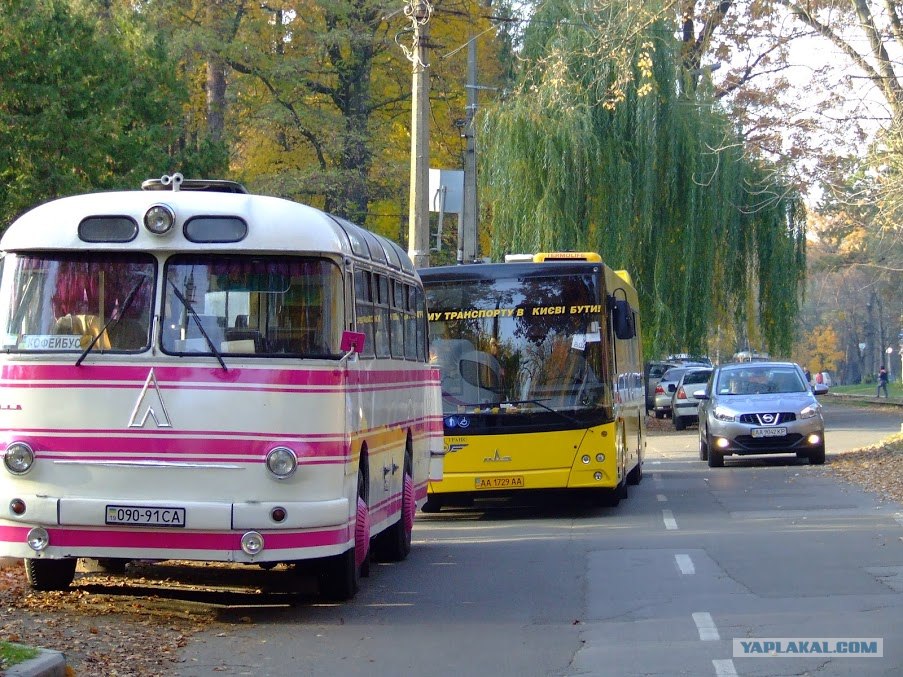 21. Старый и новый автобусы в осеннем Киеве.