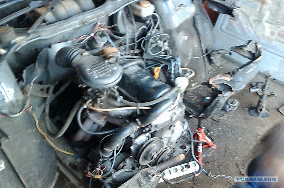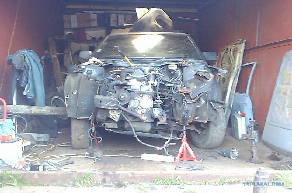 пилим режем лишнее..параллельно тянем лебедкой. машину крепим к полу всеми подручными способами..