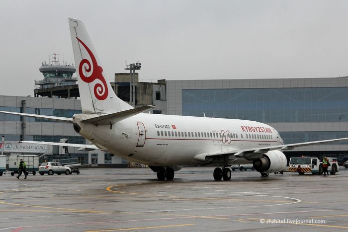 Сейчас самолет буксируется тягачом. Основные двигатели не запущены, зато видно, что ВСУ работает. Видите струю выходящих газов?