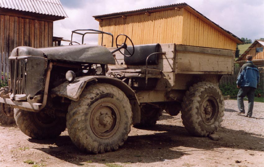 От родного - кузов, руль и щиток приборов. Рама с паджерика. Двигатель оттуда же (дизель). 4WD. Сиденья тойотовские. Знаю потому, что переделкой занимался мой батя. Я же в сиё творение внёс вклад в виде полного монтажа электропроводки. Даже свечи накала как надо работают.