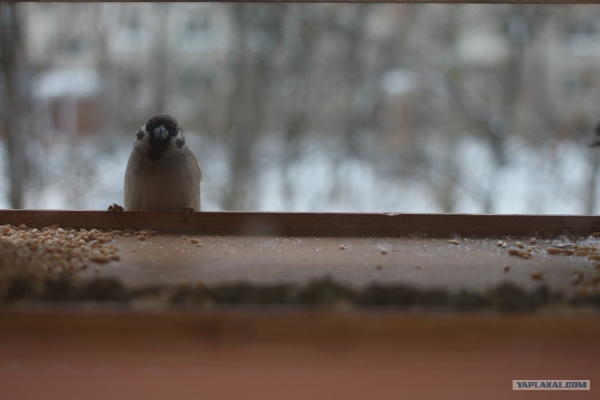 Воробьев постоянно вижу, пшеном их подкармливаю, они очень милые.