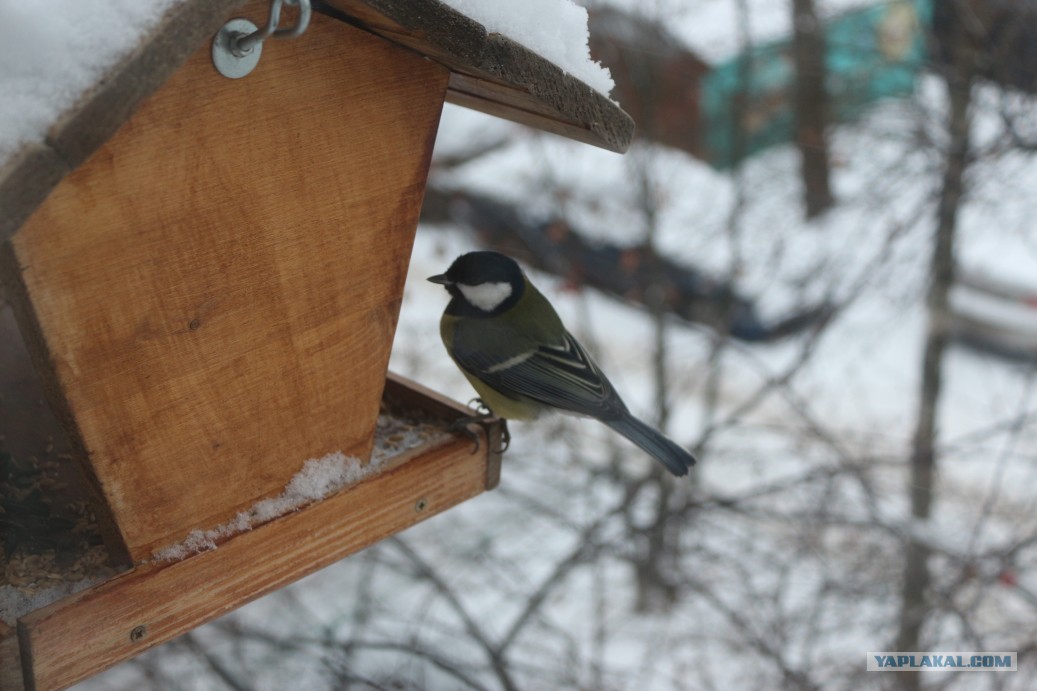 Кормушка за окном висит,чаще всего прилетают- Синицы