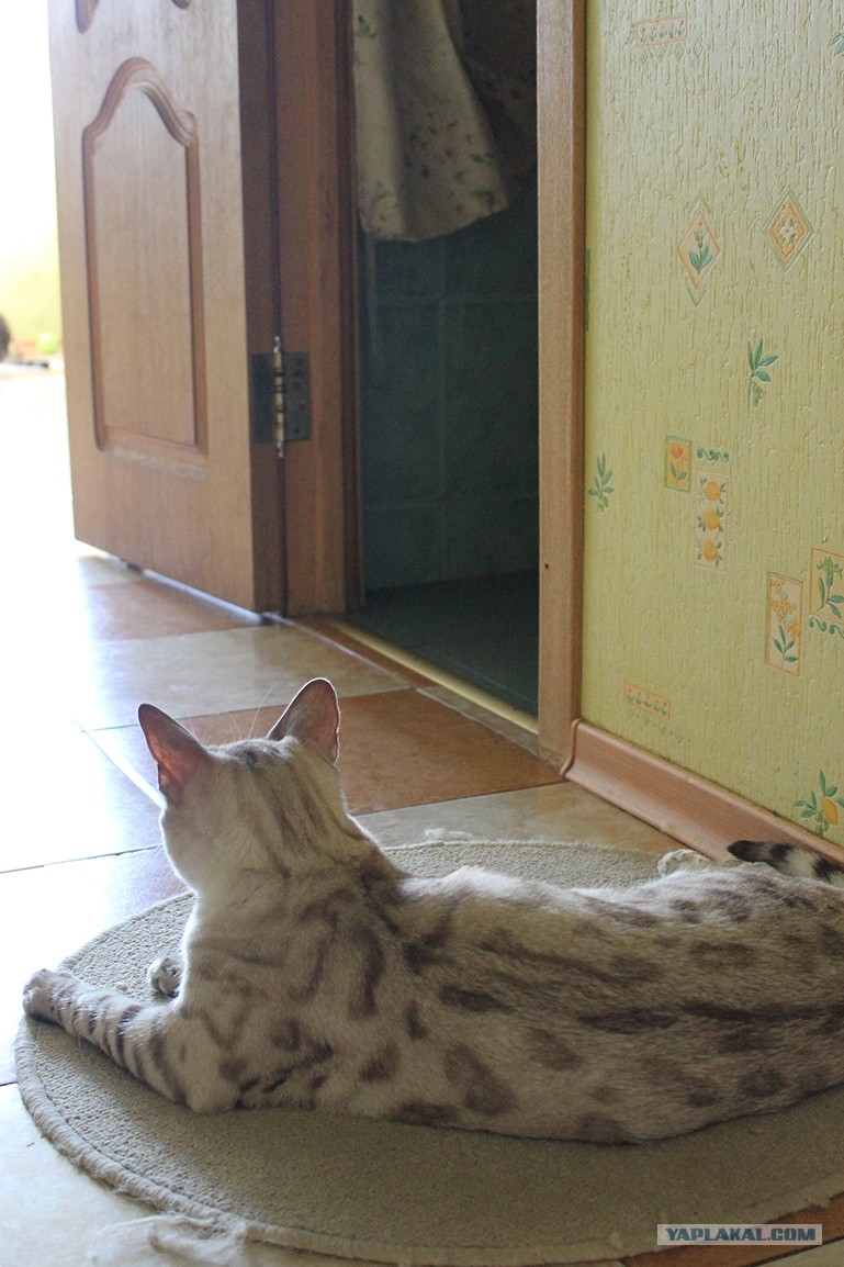 Коврик, к слову, из ванной. Но зачем он там? Ведь гораздо удобнее лежать на нем в коридоре и обозревать окрестности!