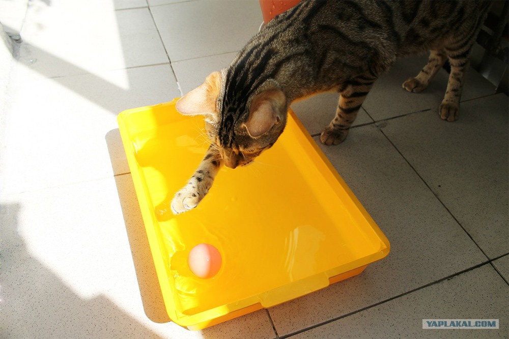 Еще Муся любит играться с шариком в воде:
