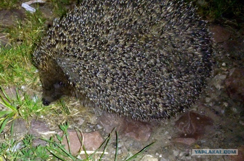 Шли домой ночью летом (Киев), в соседнем дворе ежик сидит. Мы давай фоткать, гладить. Думала, убежит. А он даже не свернулся. Сидел и дремал, пока мы умилялись)