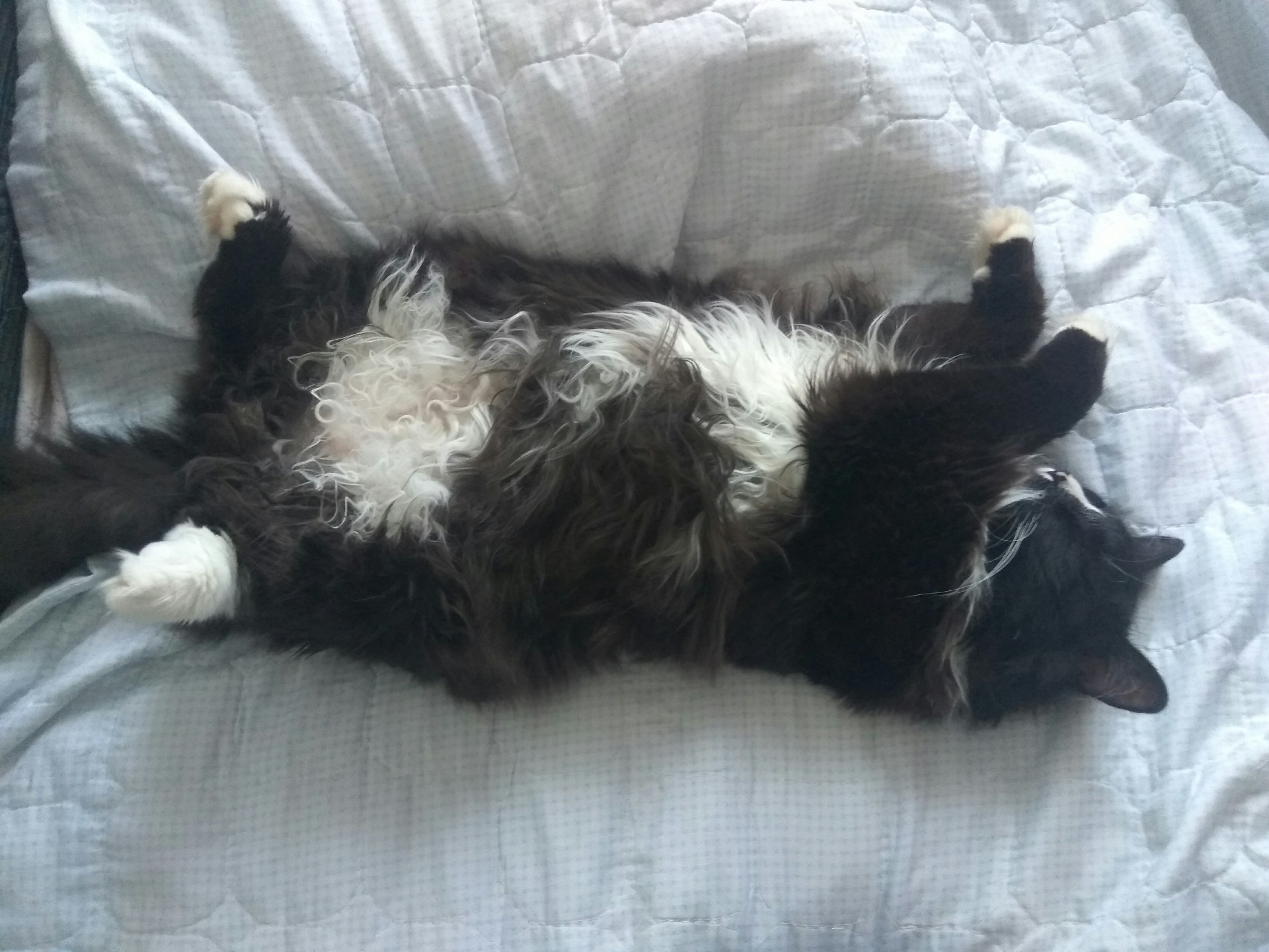 Спит только так, как мимо этого пуза кучерявого пройти?