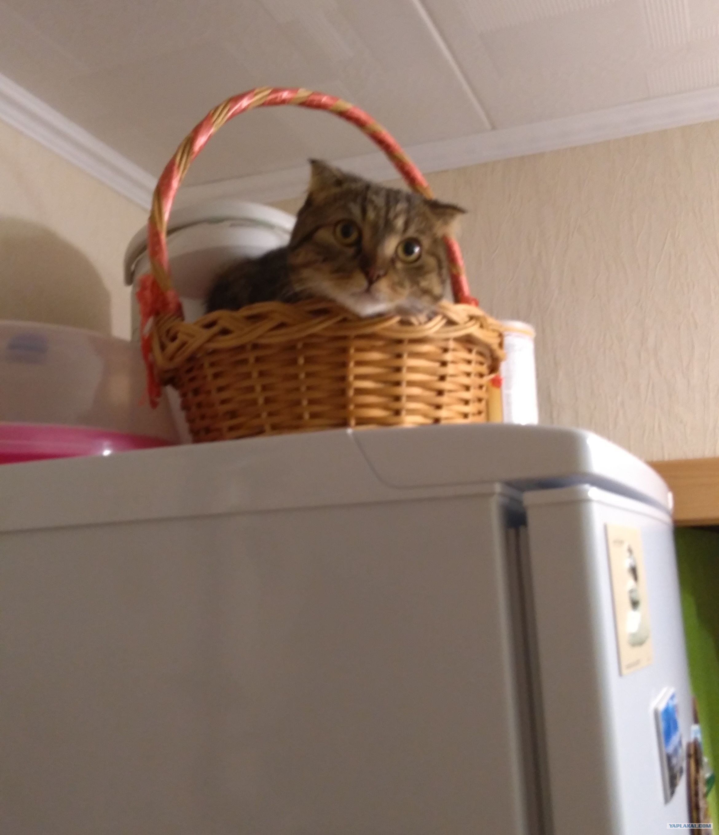 У нас самоизоляция по-полной. На холодильник залезает сам. В корзинку прячется при попытке оттуда согнать.