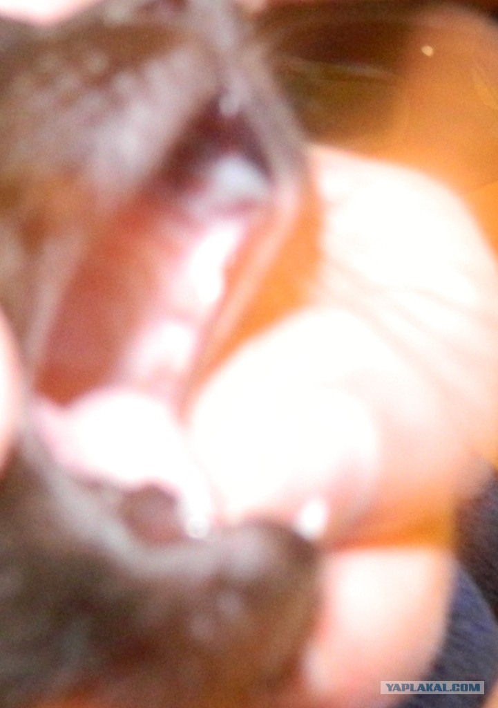 Так от клеща он будет чесаться или нет? Язвы или какие-то повреждения кожного покрова? И еще, камрады - котейка в таком возрасте должен сам есть? Пьет только молоко, мясо давал, нюхает и вроде как не знает что с ним делать... Вот зубы, не очень видно, но знатоки, думаю, определят возраст живности. Фото некачественное, но мучить животную не стал: