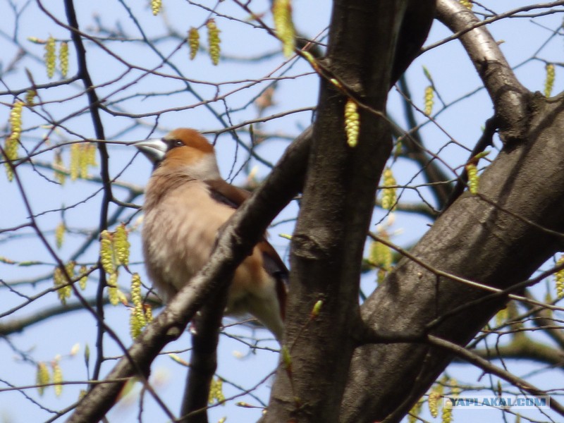 Что у нас есть: синица, воробей, скворец, зяблик, вяхирь, грач, галка, дрозд, рябинник, поползень, горихвостка, стриж, пустельга. Прошлой зимой первый раз за 40 лет жидел в городе снегиря.