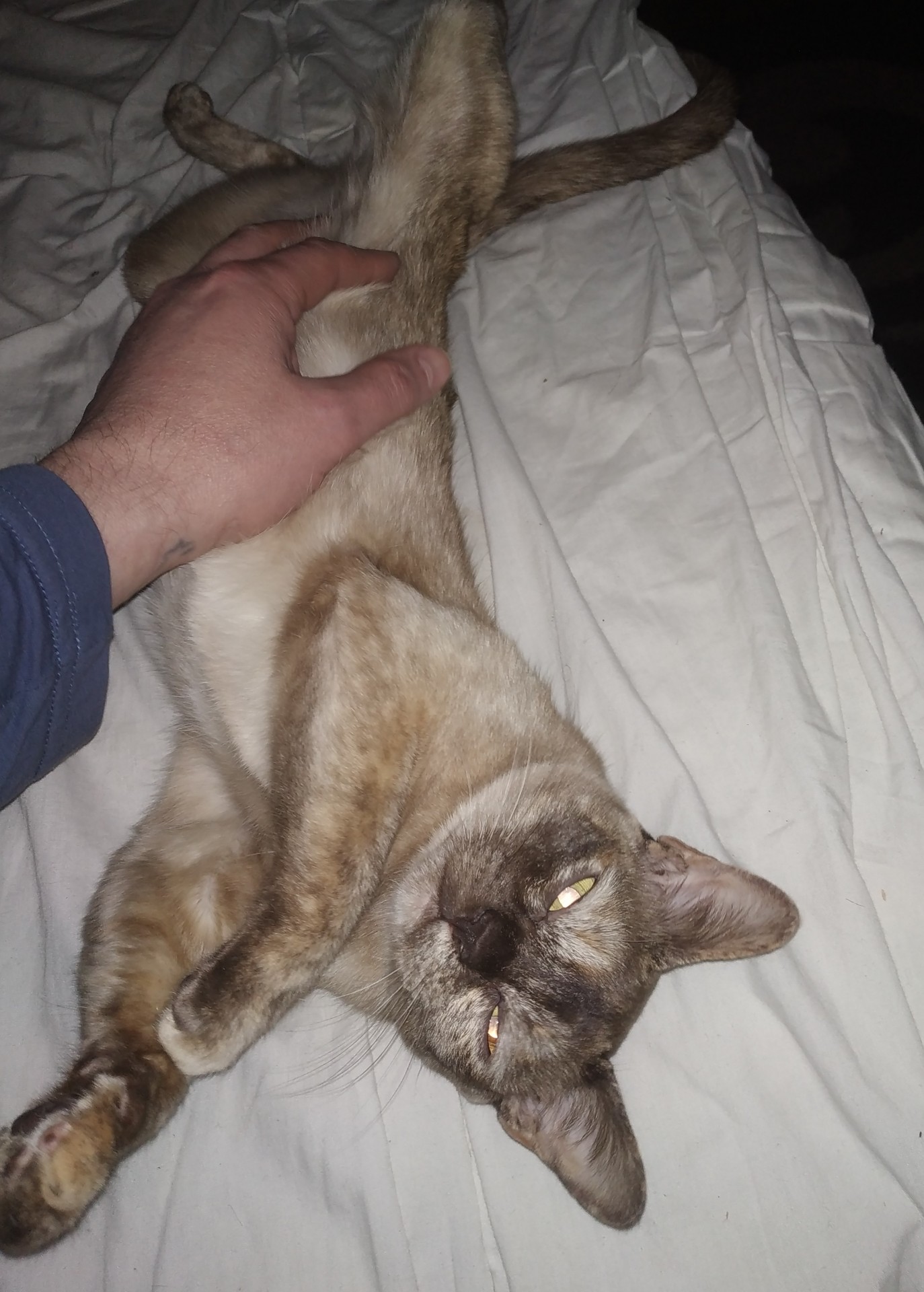 Аха...Как у моей.. приходится гладить пузяку.. а то укусит..