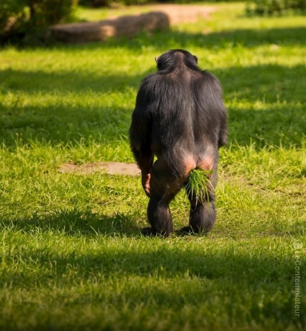 Всё началось с самки шимпанзе по имени Джули, которая пихала травинку в ухо, затем самец Джума подхватил тренд, проапгрейдил его и начал пихать траву уже в задницу, а за ним начали повторять другие.