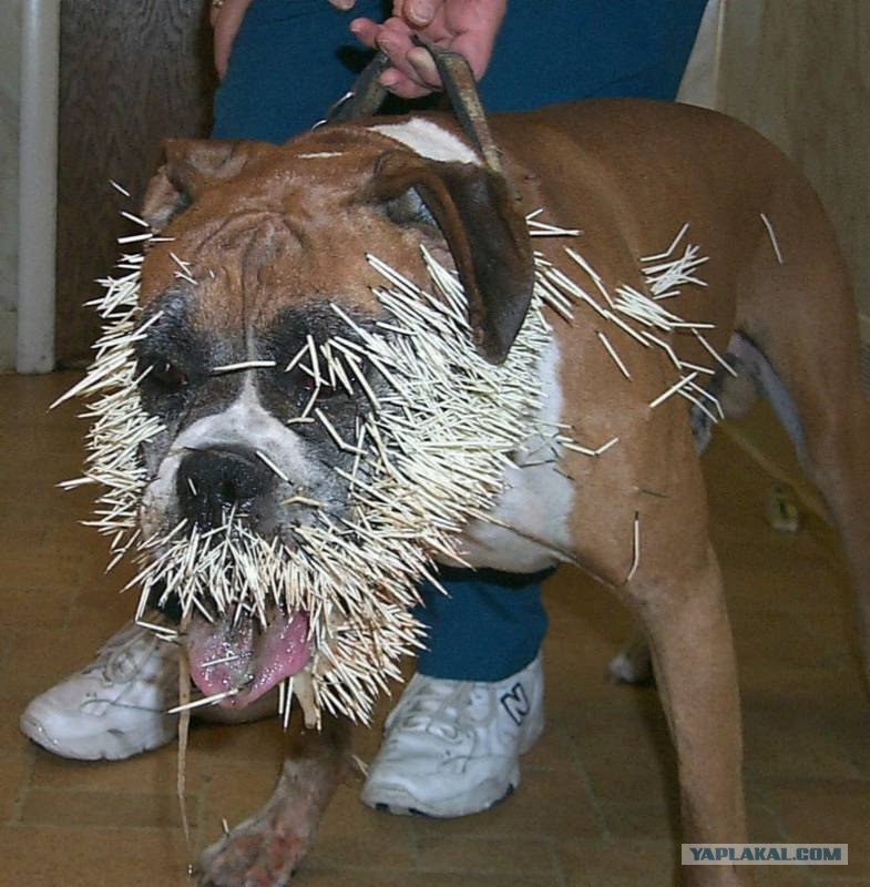 жалко животинку, хорошо, что у нас дикобразов нет, а то мой мелкий бы страдал постоянно,он же охотник