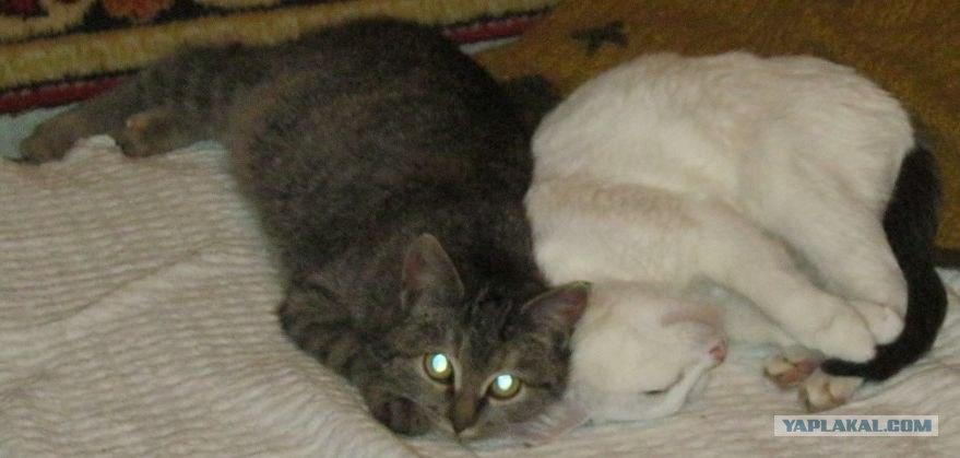Ребят ... вы не поверите .. но пару месяцев назад я нашел котенка ... сейчас он подрос .. сфоткать не могу .. не на что ... но вот фотка через пару недель как нашел ... и его черты сейчас в точности повторяют окрас на фотке (на фотке он и кот которого я так же подобрал года 3 назад)...