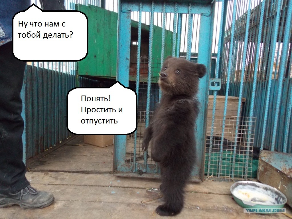глаза у медвеженка грустные-прегрустные, да еще эта новость про цирк, ну ужас же... ну понятно - в неволе не сможет, к людям привык и охоте не обучен, но неужели нельзя в зоопарк какой-нибудь передать, в заказник хоть?! и закидайте меня шпалами, но цирк - это концлагерь для зверя! надо это вообще запретить - пусть в цирке работают люди, которые сознательно этого хотят - гимнасты и клоуны, они зарплату получают, но нельзя мучить зверей, они же как дети cry.gif