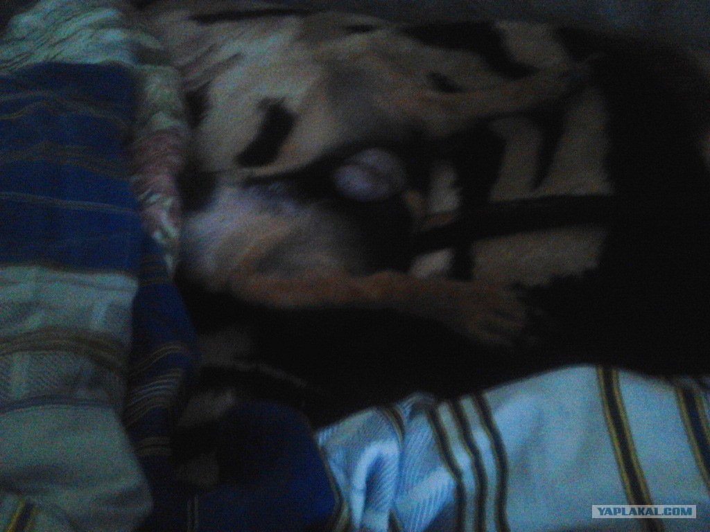 У меня такс тоже спит на спине, тока лапы задние торчат из под одеяла.