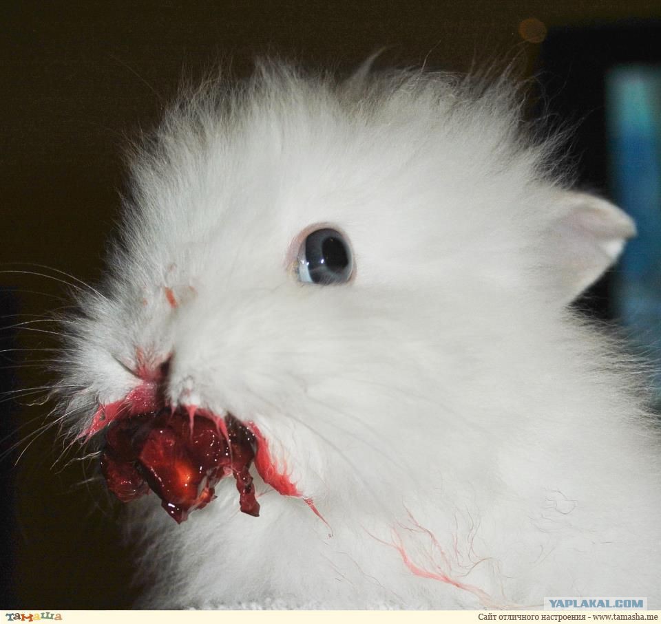 хорошо, что котяра не полностью белый. а то было бы жестче, чем с кроликом, который вишню ел
