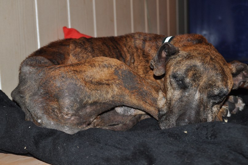 Привет всем!Хочу сообщить вам радостные новости! Супа начинает приходить в себя уже абсолютно по настоящему.С утра съела миску каши + 50 гр семги.Потом пошла гулять.На прогулке она начала обнюхивать всякие собачьи интересности,и это ужасно радует! Потом она опять легла спать,и спала до 12 часов.Затем к ней приехал профессор психиатрии из Мед.университета и провел с ней бесплатную консультацию. Это по поводу восстановления участков мозга,после обратимого нарушения кровообращения и реактивных психозов,связанных с основным заболеванием. Выписал рецепты.Но,есть еще куча радостных новостей!Супа просит кушать,бессовестно побирается ,с наглой и невинной мордой,правда глазки делать еще не умеет))Конечно больше чем ей положено,мы не будем ее кормить.Это было бы только во вред,но кормим по малу и часто.Как прописали.Есть не очень приятная новость,Супа до сих пор не пьет водичку.Но,возможно это из за обильных капельниц и со временем все исправится.Очень приятно,что она наконец почти поверила в людей и превратилась в собаку-обнимаку))Ну,и кто говорил,что собака не выживет,и что ее надо усыпить???Живи,Супа,Живи!!
