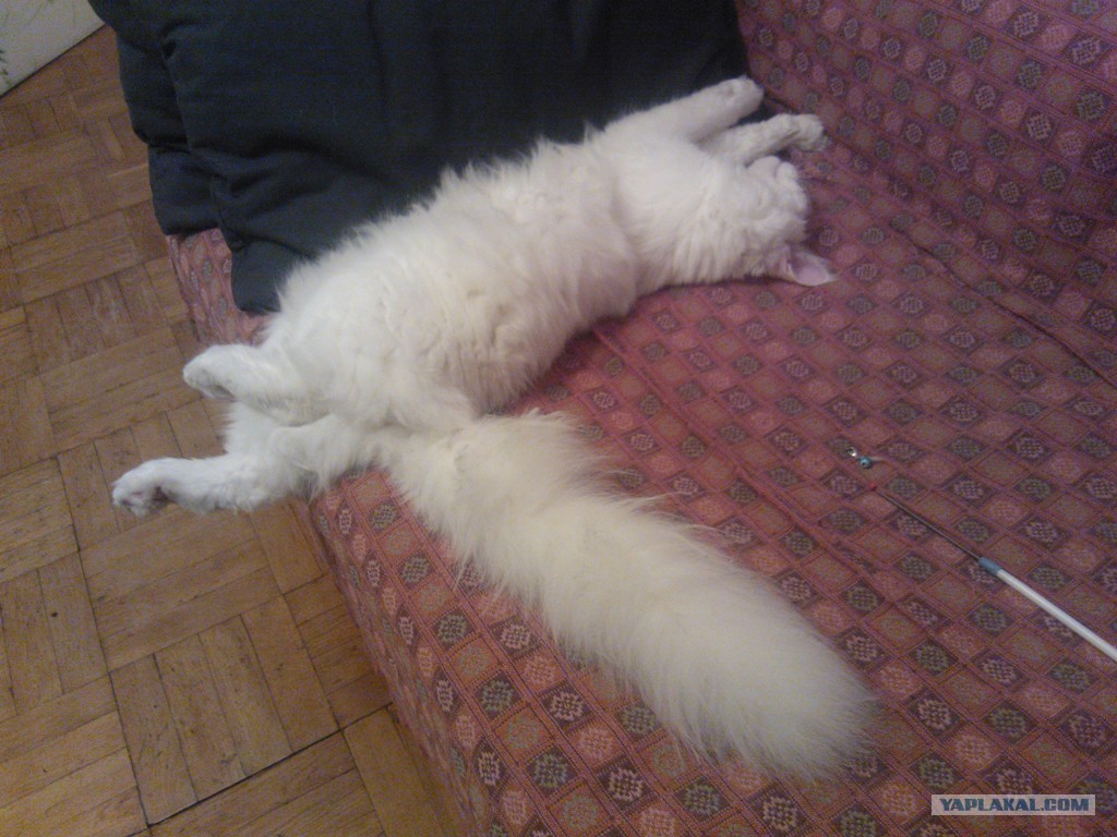 Хвостище по стандартам должен доставать до затылка... У нас достает!
