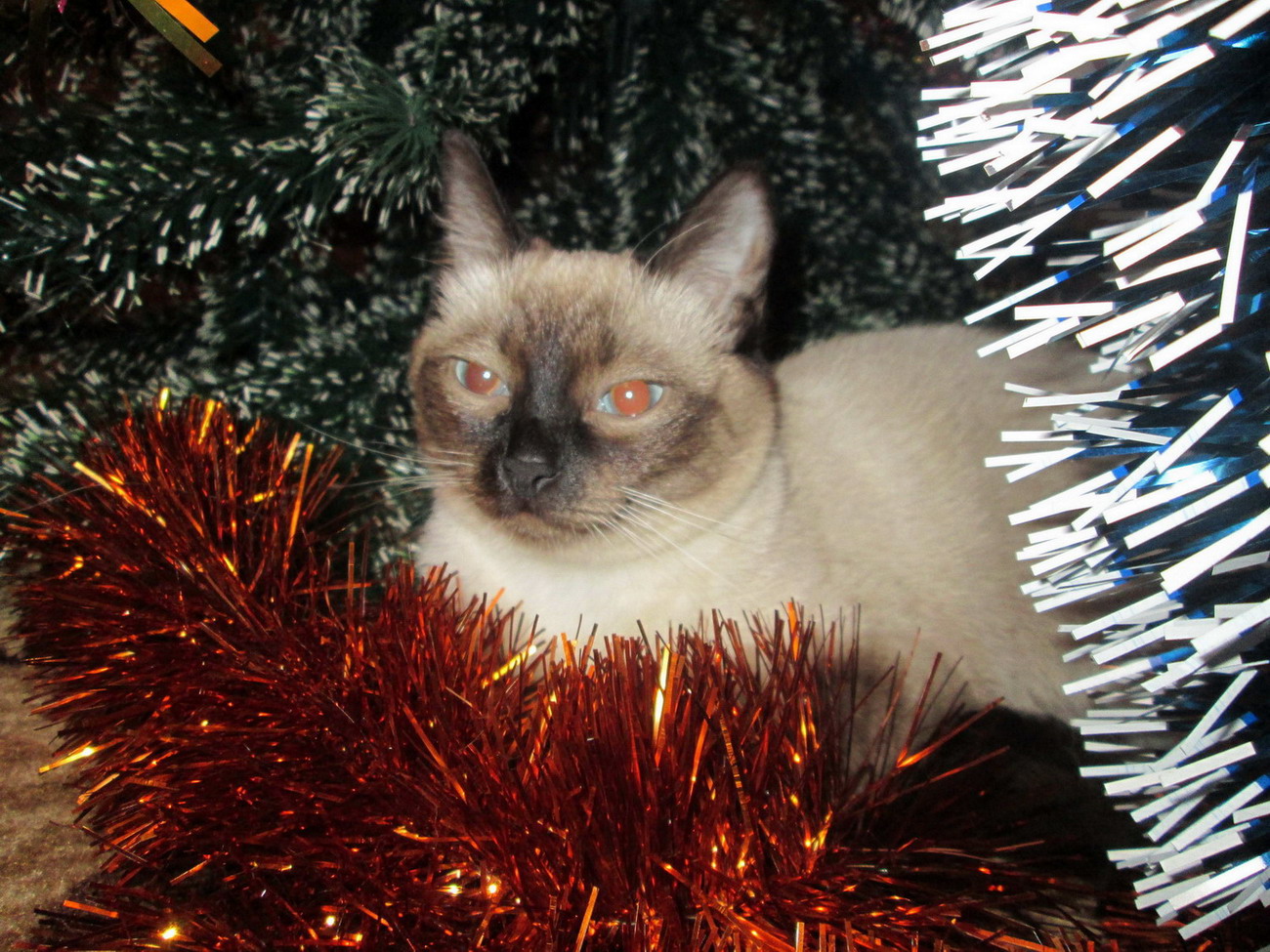 Моя коша Тася. 10.01.2010. Грызёт лампочку от гирлянды... Ушла на Радугу 04.09.2017...